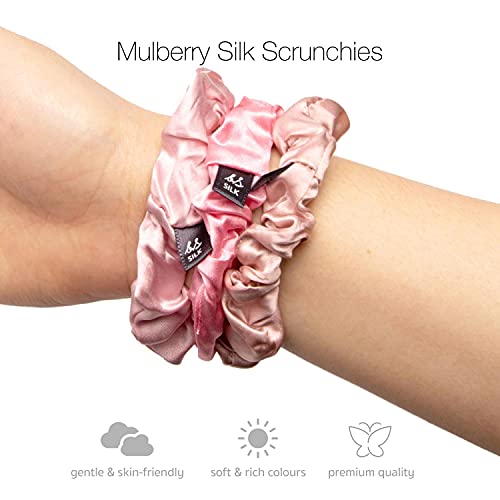 BasicSense - Confezione da 3 elastici per capelli in pura seta di gelso piccoli, per coda di cavallo, da donna e ragazza, colore rosa