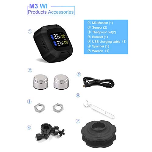 Basisago TPMS - Sistema di monitoraggio della pressione dei pneumatici, USB ChargeTyre sistema di monitoraggio della pressione con 2 sensori esterni, senza fili in tempo reale per moto