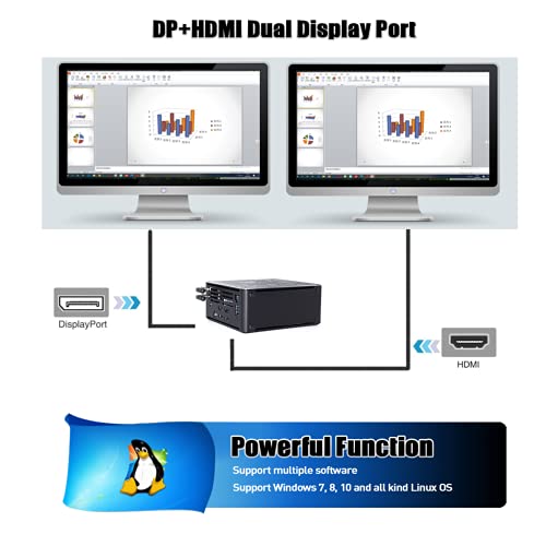 【DP & HD Dual 4K Display】Il PC a piccolo fattore di forma supporta la visualizzazione simultanea su due schermi tramite porte DP e HD, garantendo una navigazione fluida, un flusso di lavoro reattivo e una gestione confortevole di applicazioni e file, e amplia più spazi di lavoro per una maggiore efficienza e una produttività confortevole. Il mini PC può essere utilizzato anche come PC home theater o HTPC.