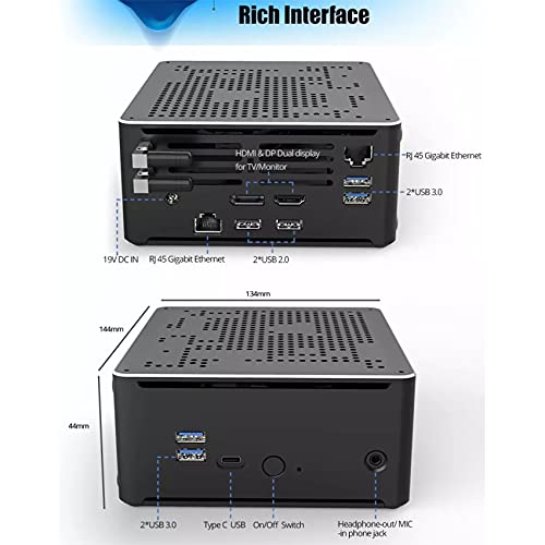 【Interfacce esterne ricche e compatte】 Il piccolo computer viene fornito con 1 porta DP 1.2, 1 porta HD 2.0, 2 porte LAN RJ45, 4 x USB 3.0, 2 x USB2.0, 1 x Tipo-C, 1 x presa telefonica out/MIC-in, 1 x alimentazione CC, sufficiente per tutti i tuoi dispositivi informatici come flash USB, archiviazione esterna di tipo C, ecc. BASOAR. O Micro PC dimensioni solo 144*134*64mm, molto compatto, salvaspazio e portatile.