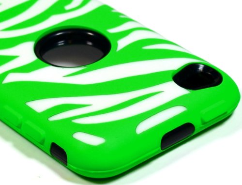 Bastex - Cover ibrida, resistente, per iPod touch di quarta generazione, in silicone con motivo zebrato bianco e verde