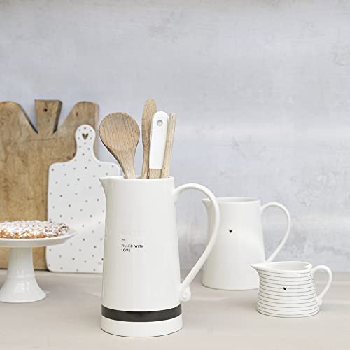 Bastion Collections Boccale per latte e panna, in ceramica, con motivo a cuore, altezza 7 cm, colore bianco e nero, BC Sauce Jug 001BL