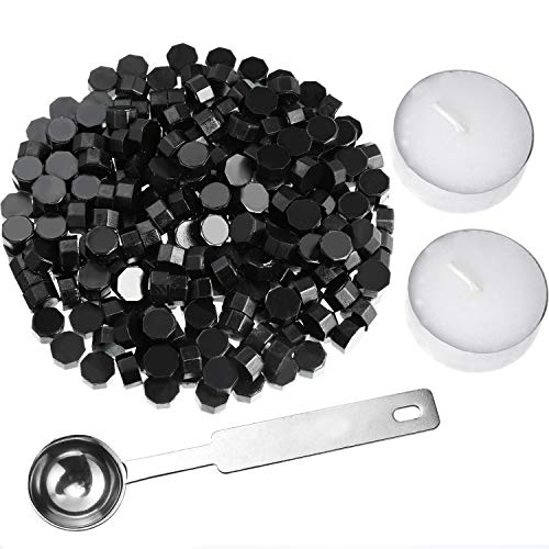 230 bastoncini di ceralacca ottagonale con 2 candele da tè e 1 cucchiaio di cera per sigillare il timbro di cera (nero)