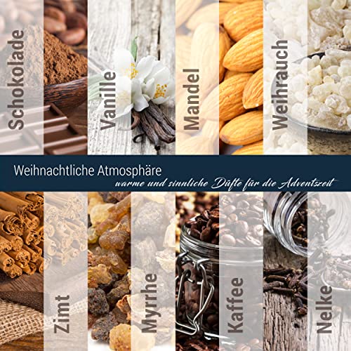 Set di bastoncini di incenso natalizio con mandorle, chiodi di garofano, legno di sandalo, cioccolato, vaniglia, cannella e due sorprese Set di prova per il periodo natalizio freddo, set originale Luxflake con biglietto di ispirazione.