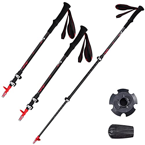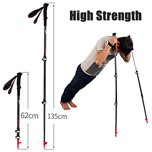Bastoncini Nordic Walking 62-135cm,Regolabili Bastoni Trekking Trekking,Antiurto Ultraleggero Bastoncini Trekking Carbonio,per Campeggio Escursioni Camminate Racchette Trekking(Size:2 pcs,Color:Nero)