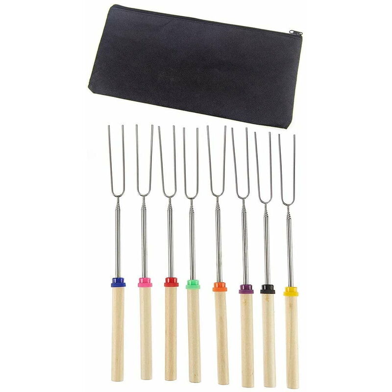 Ti permette di prevenire marshmallow, cani e verdure di girare durante la cottura, offrendo il tuo controllo ottimale per un toast perfetto preparare marshmallow, hot dogs e verdure arrostibili facilmente, ovunque. Questi torrei telescopici sono testati e in modo compatto e ordinato a 29 cm, mentre si estendono fino a 115 cm di lunghezza per una torrefazione in sicurezza. facile da trasportare, un must per i tuoi viaggi di campeggio o barbecue nel cortile. < / p> Solo forcelle BBQ, la dimostrazione di altri accessori sulla foto non è inclusa. • 8 bastoncini per la torrefazione marshmallow con manico in legno e forchette allungabili, set manica telescopica per campo da fuoco, camino e barbecue Salsicce
