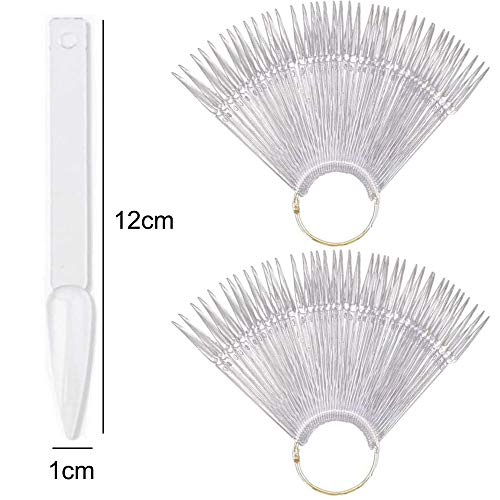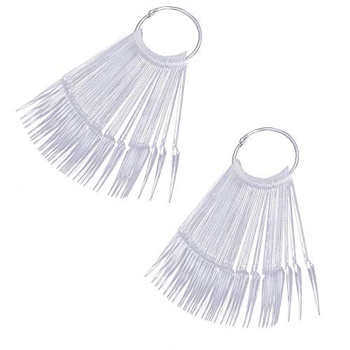 Bastoncini trasparenti per esporre unghie finte, 80 pezzi, a stiletto, a forma di ventaglio per nail art, con supporto ad anello, per esibizioni in gel e pratica, trasparenti.