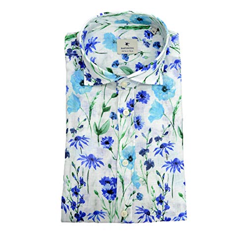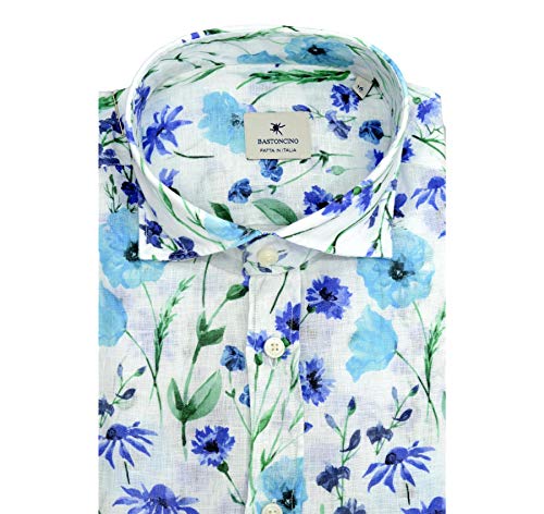 BASTONCINO Camicia Uomo Slim Fit Puro Lino Fantasia Art. B1572 Taglia 41
