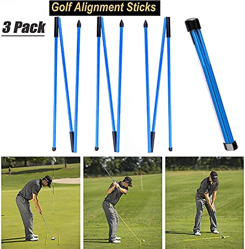 Bastone di allineamento da golf da 48", aiuto alla pratica di allenamento Pro per allenare il correttore di postura per altalena per interni ed esterni, 3 confezioni (blu)
