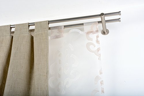 Bastone doppio per tende Ø 20 mm senza anelli, L. 140 cm. in acciaio satinato - completo
