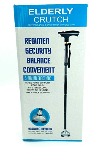 Bastone 5 in 1 LED luce AAA. Supporto a 4 punti. Snodo alla caviglia. Telescopico. Pieghevole. Regolabile in piedi da solo, stampella anziana, colore: argento.