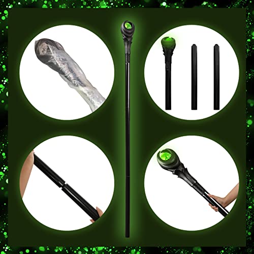 Bastone malefico deluxe con sfera di luce verde/arancio, bacchetta magica per Halloween