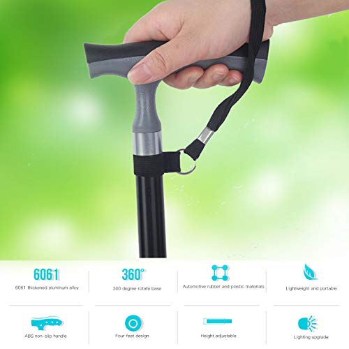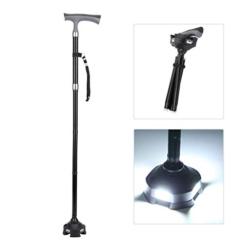 Bastone da passeggio con bastone da passeggio per anziani pieghevole leggero a LED con impugnatura laterale, pieghevole e portatile