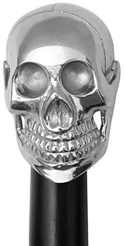 Bastone da passeggio a forma di teschio, con manico nichelato argentato, bastone da passeggio in legno - decorazione da passeggio