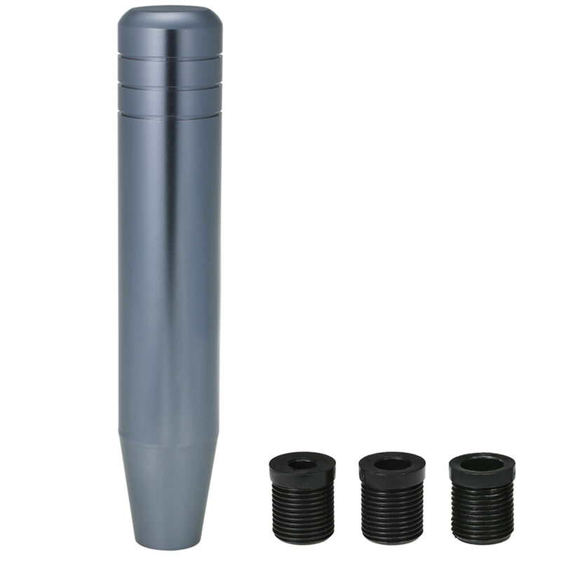 Caratteristiche: 100% nuovo di zecca e di alta qualita. Design universale per adattarsi alla maggior parte delle auto. Realizzato secondo le abitudini di guida delle persone e si adatta perfettamente alla tua mano. Viene fornito con 3 adattatori di installazione in gomma (8 mm, 10 mm, 12 mm). Facile da installare, sostituzione diretta della manopola originale, non e necessaria alcuna modifica. Specifiche: Colore: argento/nero/grigio (opzionale) Materiale: alluminio Tipo: pomello del cambio Dimensioni del pacchetto: 23 * 8 * 4 cm / 9,1 * 3,1 * 1,2 pollici Peso: 393 g / 14 once Lista del pacchetto: 1 * Pomello del cambio 3 * adattatori