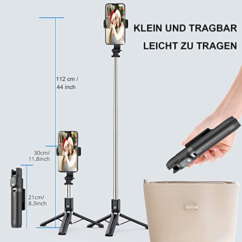 Bastone Selfie 3 in 1 Bluetooth Bastone Selfie Treppiede 112cm Selfie Stick Supporto treppiede cellulare espandibile con telecomando per iPhone 14/13/12, smartphone da 4,7 a 6,5 pollici (112cm)