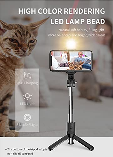 【4 in 1 Bastone Selfie con Luce】il selfie stick viene fornito con una luce staccabile che può essere caricata tramite un cavo USB. Ha 3 modalità e 6 opzioni di intensità del colore. Premere a lungo per accendere la luce e premere brevemente per regolare i livelli di luminosità. Scatta foto perfette quando c'è poca luce, fai in modo che le tue foto abbiano una luce soffusa e un'immagine chiara, un kit utile nella vita quotidiana e nel lavoro.