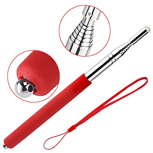 Bastone telescopico per insegnanti con cordino, puntatore per insegnamento per classe, puntatore a mano allungabile, lavagna bianca puntatore retrattile per presentatore portatile(rosso)