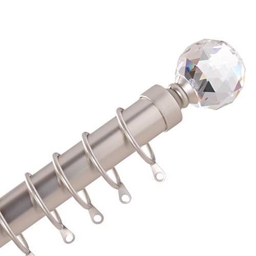 Bastone per tende, estensibile, in nichel satinato, 28 mm, con terminali in cristallo, anelli e fissaggi