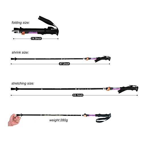 Bastone da trekking e arrampicata, pieghevole e ultraleggero, regolabile e antishock, con impugnature in schiuma EVA, colore viola, 1 pezzo, Purple 1 PCS