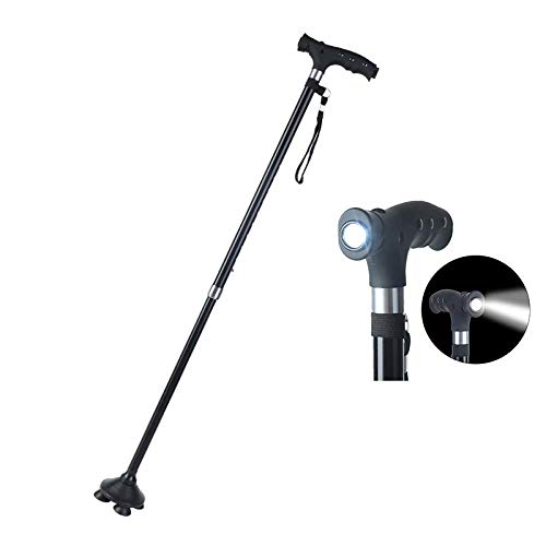 Bastoni Da Passeggio Alluminio LED Illuminati Altezza Regolabile Stampelle Per Anziani Base Antiscivolo Bastone Portatile Leggero Con Impugnatura Ergonomica Aiuto A Quattro Zampe Mobilità