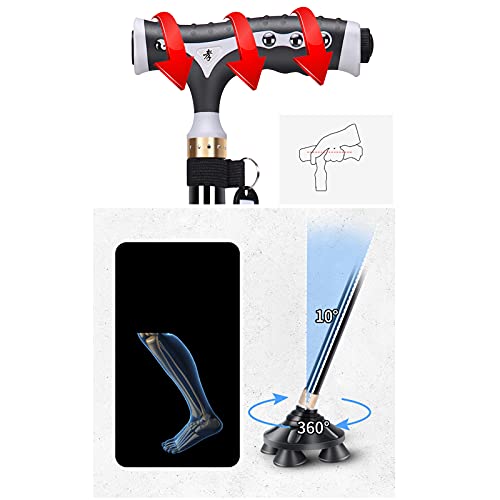 ★ Vantaggio: la base offre 4 punti di contatto per un equilibrio e una stabilità superiori, proprio come il piede umano. Il telaio in fibra di carbonio è leggero, i bastoncini telescopici leggeri in fibra di carbonio ricevono un trattamento duro anodizzato che previene i danni alla superficie attraente che li rende durevole