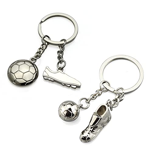 BASTOUR Portachiavi da Calcio, Scarpa da Calcio Portachiavi nel Colore Argento, Sport Portachiavi Decor Accessori, Calcio Fan Regalo, 2 Pezzi