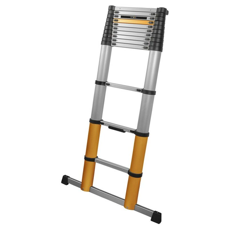 Vai 'al cielo' con la Giraffe Air di Batavia! La scala telescopica BATAVIA da 3,81 m è compatta e maneggevole nelle dimensioni, ma raggiunge fino a metri di altezza. Grazie al meccanismo telescopico, puoi facilmente allungare i gradini all'altezza che desideri. Il grande vantaggio di una tale scala è che si adatta ovunque se la porti con te. Ad esempio, nella parte posteriore del bagagliaio, perchè una volta retratta, anche la scala più lunga è alta meno di 1 metro. Dati tecnici: • Numero sportivo: 12 (13) • Lunghezza: 0,91 m • Lunghezza: 3,81 m • Portata: 4,60 m • Larghezza: 88 cm (con barra stabilizzatrice) • carico consentito: 150 kg • Peso del prodotto senza batteria: 15,3 kg • Dimensioni del prodotto (L x P x A): 91 - 381 x 88 x 9 cm Cosa c'è nel pacchetto? • 1x scala telescopica 3,81m • 1x barra stabilizzatrice • 1x manuale • 1x fattura (certificato di garanzia) Approvazioni/certificati: EN 131, TUV Quanti anni di garanzia? La scala telescopica BATAVIA da 3,81 m viene fornita