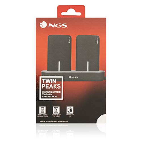 BATERIA EXTERNA NGS TWINPEAKS POWERBANK 2 x 5000mAh + BASE CARGA NEGRO TWINPEAKS