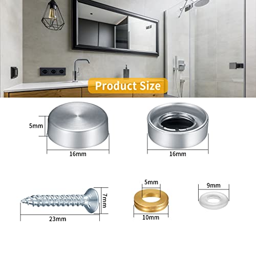 Bateya 16 Set Viti a Specchio In Acciaio Specchio Chiodi 16mm Decorative Tappi Per Specchio, Viti da Specchio Viti e Tappi Per Specchietti Accessori Per Piatti Da Bagno, Tavoli, Armadi