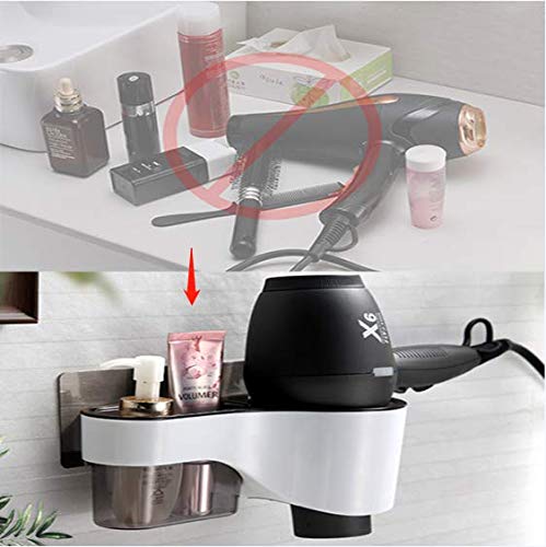 【Conservazione efficace】 Questo supporto per asciugacapelli può aiutarti a organizzare asciugacapelli, pettini, fermagli per capelli, fasce per capelli e altri gadget per il trucco quotidiano in bagno o in camera. Metti subito in ordine il piano di lavoro.