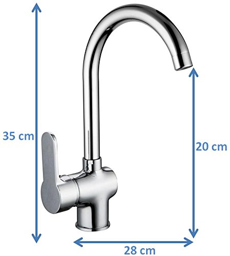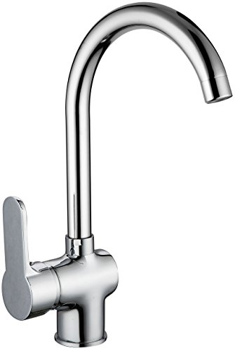 Rubinetto monocomando verticale per lavello con bocca di erogazione alta girevole.