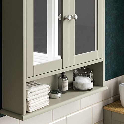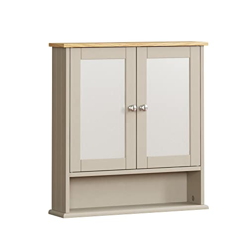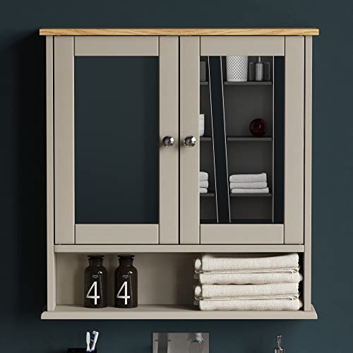 Bath Vida Priano Mobiletto da Bagno a Doppia Anta in Legno, Grigio, a Specchio, Grey Double Door Bathroom Cabinet, ingegnerizzato, H 58 x L 56 x P 13 cm Circa
