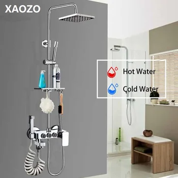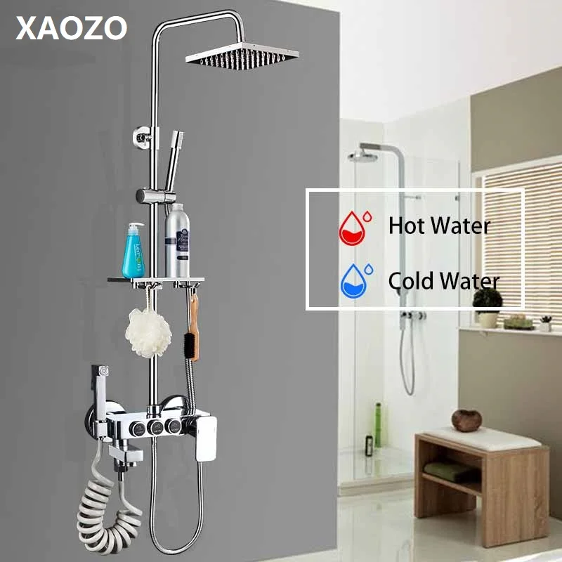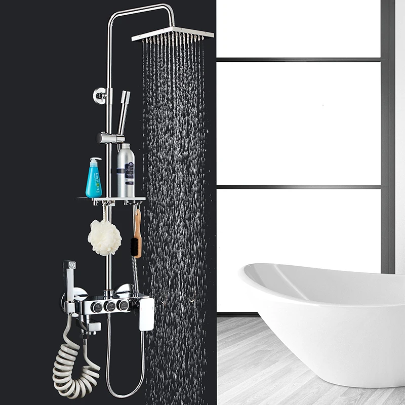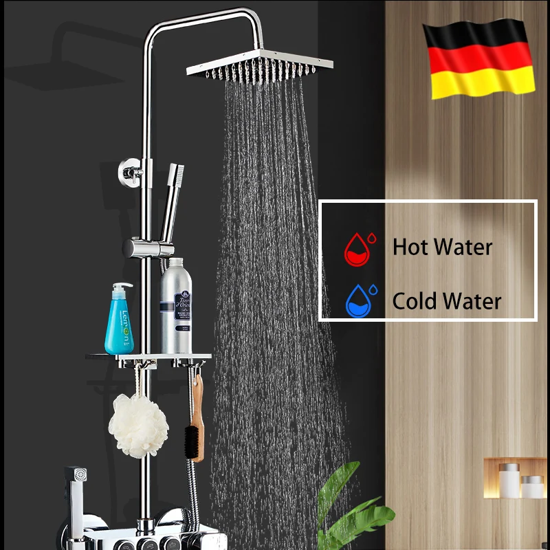 Bathroom Shower Set Bath Shower Mixer with Hand Shower button Head Faucet Rainfall Shower Rain Waterfall Brass Faucets Set