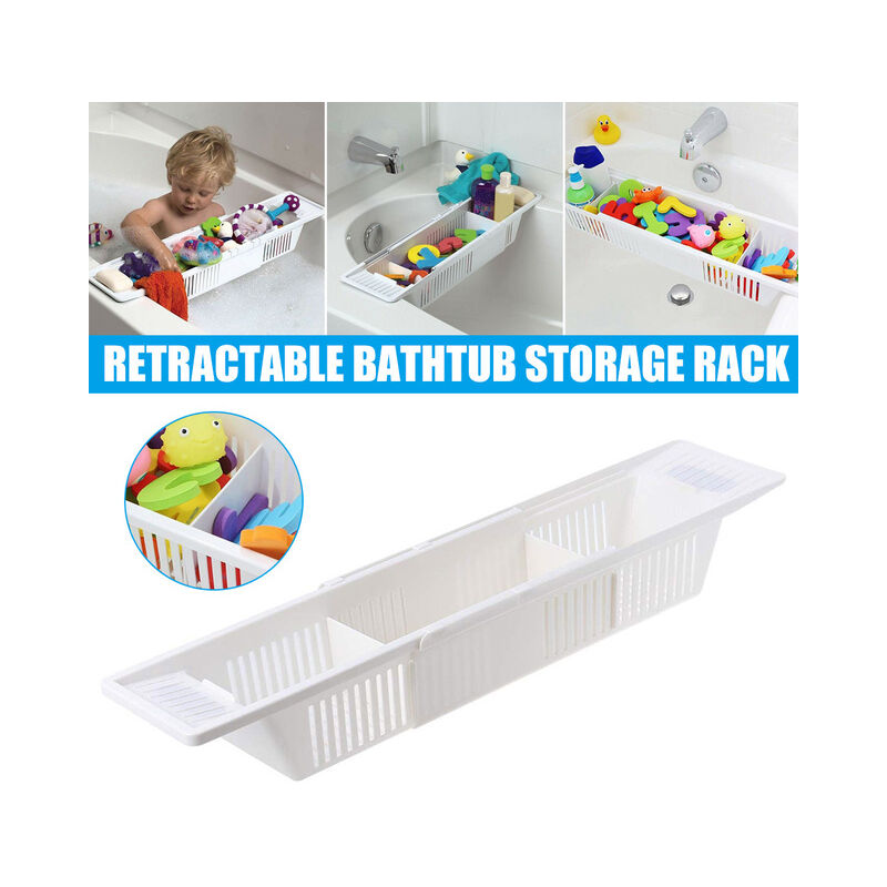Bathtub Caddy Tray Plastic Bathtub Basket Shelf Rack Bath Toys Organizer Retractable Storage Rack IMNT Item Specification: Description:1. The bathroom storage basket is adjustable and suitable for most bathtubs. The partition panel is suitable for your needs.2. The bathroom storage basket can hold bathroom toys, soap, shampoo, etc! The partition separates the toy from the toiletries. The sides and bottom of the slot allow the items to dry normally.3. Plastic products, no mold, no rust, resistance to falling pressures4. This shrink frame can also be used for shampoo, shower gel, clothing and bath towels.5. Its retractable design meets almost all sizes and styles of bathtubs.Note: Light shooting and different displays may cause the color of the items in the picture to be slightly different from the actual items. The measurement tolerance is +/- 1-3cm.Specifications:Material: plasticReduced size (approx.): 57 * 14 * 10cmExpanded size (approx.): 86 * 14 * 10cmPackage contents:1 * Storage