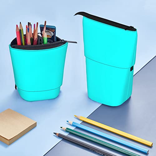 BAtlam Portapenne in piedi con motivo blu verde acqua, astuccio telescopico per matite, cancelleria per bambini e adulti