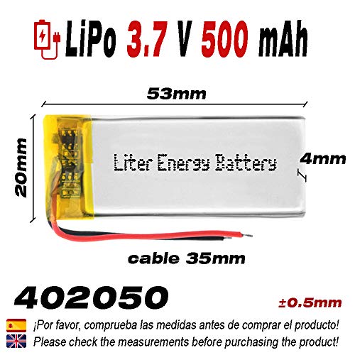 Batteria 402050 LiPo 3.7V 500mAh 1.85Wh 1S 5C Liter Energy Battery per l'elettronica Ricaricabile Telefono Portatile Smartwatch Orologio GPS - Non adatto per Radiocomando 52x20x4mm (500mAh|402050)