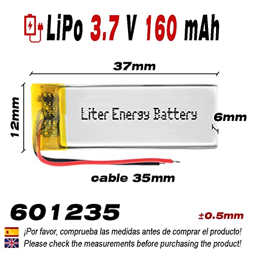 Batteria 601235 LiPo 3.7V 160mAh 0.592Wh 1S 5C Liter Energy Battery per l'elettronica Ricaricabile Telefono Portatile Smartwatch Orologio GPS - Non adatto per Radiocomando 37x12x6mm (160mAh|601235)