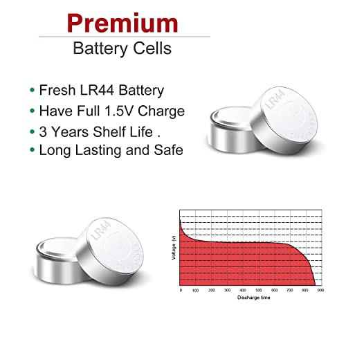 Compatibilità multipla - Equivalente ad altri modelli: LR44,CR44,SR44.357,SR44W,AG13,G13,A76,A-76,PX76.675.1166a,LR44H,V13GA,GP76A,L1154,RW82B,EPX76,SR44 4SW,30 3, SR44, S303, S357, SP303, SR44SW