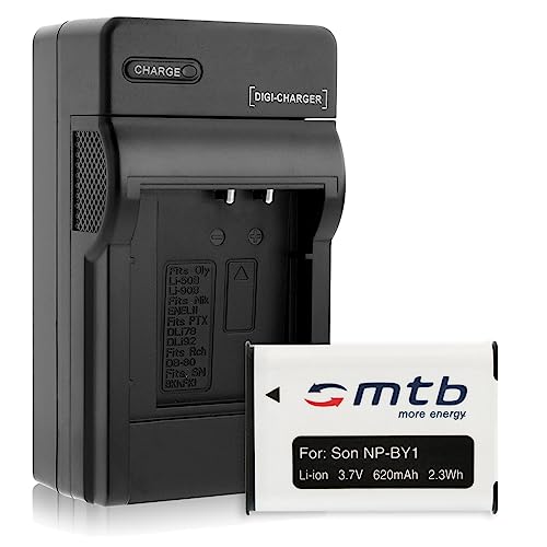 Batteria + Caricabatteria (Auto/Corrente) NP-BY1 NPBY1 compatibile con Sony HD Action Cam Mini AZ1 con Wi-Fi/HDR-AZ1 (KIT), HDR-AZ1VR