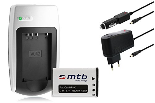 Batteria + Caricabatteria NP-90 per Casio Exilim EX-FH100, EX-H10, EX-H15, EX-H20G