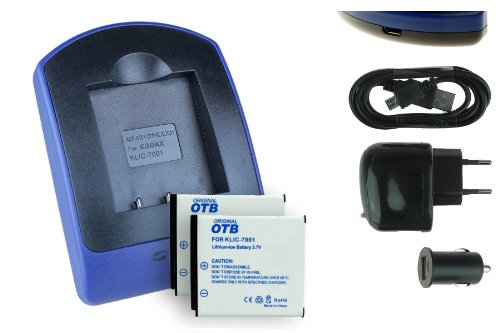 2x Batteria + Caricabatteria (USB/Auto/Corrente) per Kodak Klic-7001, Easyshare M320... / BenQ DC E1050 E1220 / Praktica Luxmedia 10-TS.. v. lista