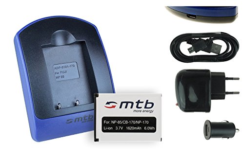 Batteria + Caricabatteria (USB/Auto/Corrente) NP-85 per Fuji Fujifilm Finepix S1, SL240, SL260, SL280, SL300, SL305, SL1000