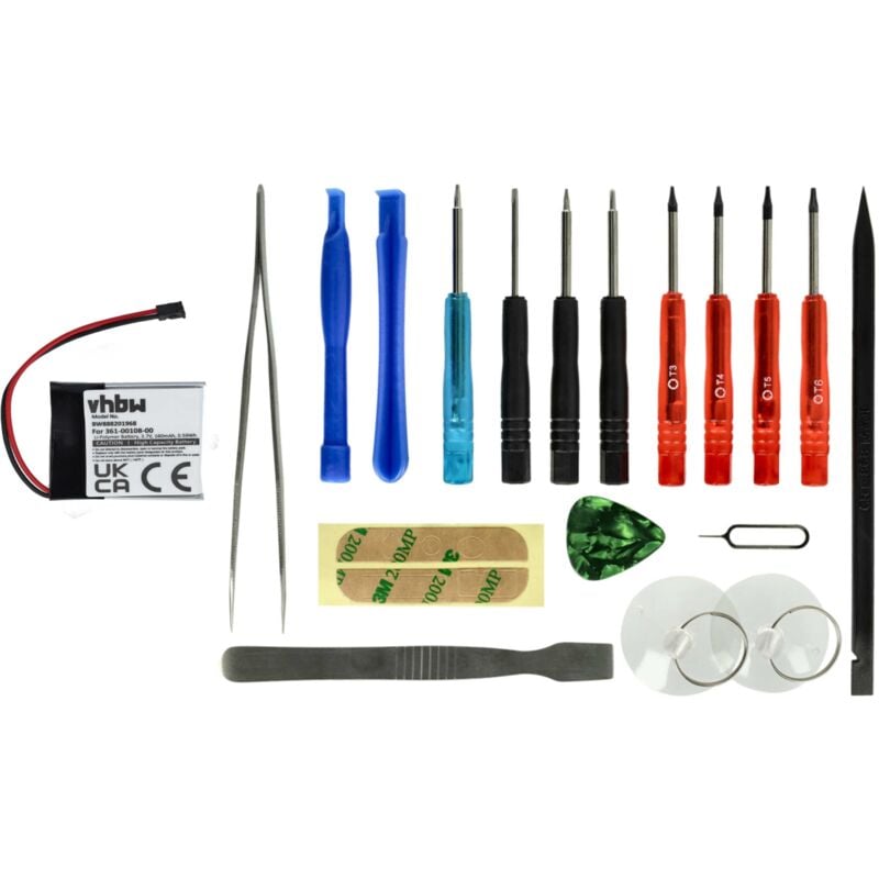Vhbw - the clever way - Batteria ricaricabile di ricambio, compatibile e di alta qualità, ad alta capacità, per smartwatch, bracciale fitness (Può trovare tutti i modelli corrispondenti qui di seguito) - Un set di utensili necessari per la sostituzione della batteria è incluso nell'ordine - Le nostre batterie ricaricabili soddisfano tutti i requisiti rilevanti per la sicurezza operativa CONTENUTO DELLA SPEDIZIONE: - 1x batteria ricaricabile - 1x set di utensili consiste in: - 2x ventosa - 2x pad adesivo - 1x plettro - 1x apri-sim - 3x supporto / leva in plastica - 1x pinzetta - 1x cacciavite T3 - 1x cacciavite T4 - 1x cacciavite T5 - 1x cacciavite T6 - 1x cacciavite Pentalobe TS1 - 1x cacciavite Pentalobe TS4 - 1x cacciavite a stella - 1x cacciavite split ATTENZIONE: i colori possono variare a seconda della disponibilità. SPECIFICHE TECNICHE: - Tecnologia: Li-Poly - Capacità: 160 mAh - Tensione: 3,7 V - Energia: 0,59 Wh - Numero di celle: 1 COMPATIBILE CON: - Garmin Vivoactive 3