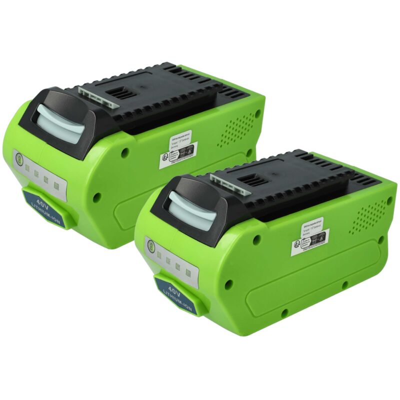 Batteria ricaricabile di ricambio, compatibile e di alta qualità, che dispone di celle potenti e durevoli, per strumenti da lavoro - È adatta anche come batteria di riserva - Le nostre batterie soddisfano tutte le principali norme di sicurezza operativa Accessorio compatibile di alta qualità ad alte prestazion di EXTENSILO. CONTENUTO DELLA SPEDIZIONE: - 2x batteria SPECIFICHE TECNICHE: - Tecnologia: Li-Ion - senza effetto memoria - Capacità: 5000 mAh - Tensione: 40 V - Energia: 200 Wh - Colore: nero / verde - Numero di celle: 10 - Con indicatore di carica a LED COMPATIBILE CON: - Greenworks GD40LM45 - Greenworks GD40LM45K2X - Greenworks GD40LM46SP - Greenworks GD40LM45K4 Per garantire la compatibilità, verificare se la batteria ricaricabile attualmente in uso è presente nell'elenco. SOSTITUISCE: - 20202, 22262, 24252, 25312, 29252, 29282, 29302, 29462, 29472, 29662, 29717, 29727, 2601102, 4 AH Li-Ion, 40V110, 40V220, 40V series, Pro 501099501 Batterie ricaricabili EXTENSILO Premium