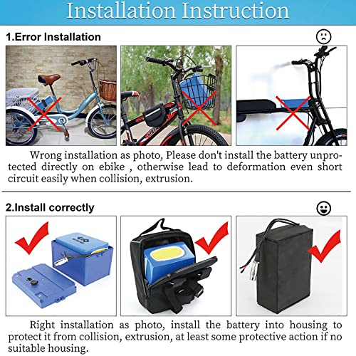 ✅ 【Materiale impermeabile】 Lo strato esterno del pacco batteria è realizzato in materiale PVC impermeabile, isolamento, anticorrosione e resistenza all'usura. Lo strato interno presenta i vantaggi di basso punto di fusione, tenuta impermeabile e alta adesione. ⚠ 【NOTA】 Non riparare direttamente la batteria sulla bici, è facile soffrire di collisione o estrusione, ridurrà la durata della batteria. Suggeriamo di metterlo in una borsa, una custodia.