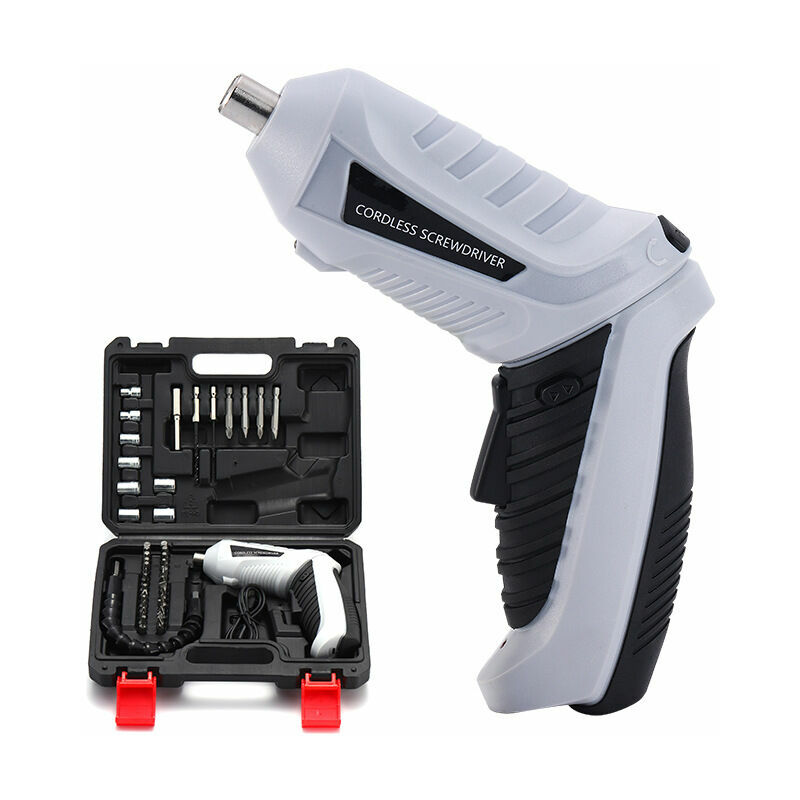 Facile da usare: puoi avviare il cacciavite con una semplice pressione. Interruttore avanti e indietro per avvitare e rimuovere facilmente. Il blocco del mandrino consente l'avvitamento manuale e offre un controllo migliore. Materiale di alta qualità: realizzato in acciaio di alta qualità e rifinito con cromo trattato termicamente, durevole e resistente alla corrosione. Manici in materiale TPR, comodi per la presa. Protezione da overdrive: l'ingranaggio di regolazione della coppia previene danni alle superfici e la rimozione del foro. Questo cacciavite a batteria è perfetto per piccoli progetti fai-da-te domestici. Materiale di alta qualità: realizzato in acciaio di alta qualità e rifinito con cromo trattato termicamente, durevole e resistente alla corrosione. Manici in materiale TPR, comodi per la presa. Cassetta degli attrezzi inclusa: questo kit di attrezzi viene fornito con una robusta cassetta degli attrezzi stampata per soffiaggio per una conservazione e una portabilità