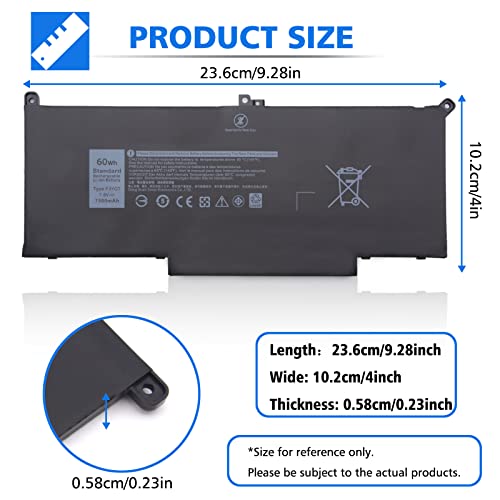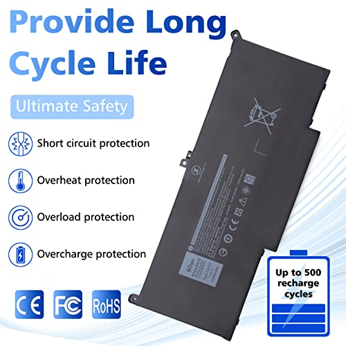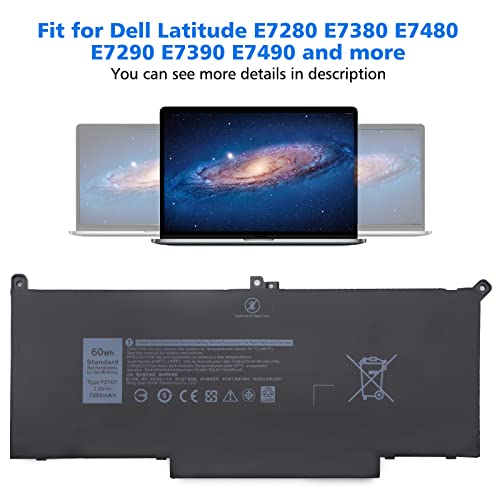 Batteria per laptop F3YGT DM3WC - per notebook Dell Latitude 12 7000 7280 7290, 13 7380 7390, 14 7480 7490 P73G002, adatta DM6WC 2X39G KG7VF 451-BBYE 453-BBCF 7.6V 60Wh
