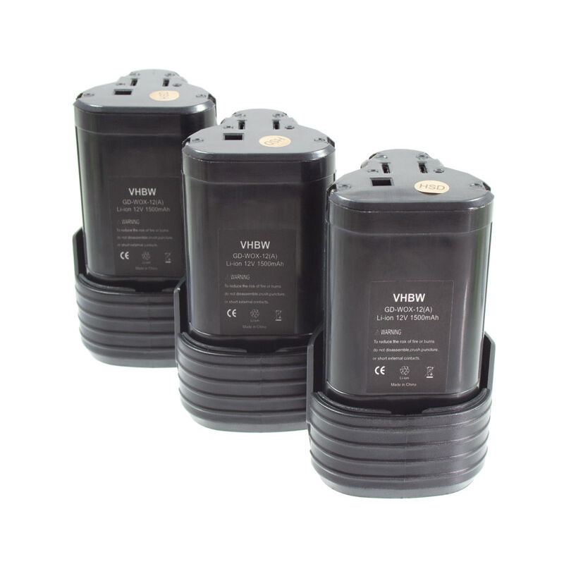 Batteria di riserva compatibile per il Suo strumento come avvitatore a batteria, trapano a percussione, radio, sega, ecc ... Ideale come batteria di riserva per quando si è in viaggio. Potrà continuare a usare il Suo attuale standard caricabatterie. Si prega di utilizzare solo caricabatterie che sono adatti alla ricarica di questa batteria. Articolo nuovo, in confezione originale, prodotto non originale. Articolo compatibile di alta qualità e capacità di vhbw. Contenuto della Spedizione: 3 x Batteria Specifiche Tecniche: Tecnologia: Li-Ion Capacità: 1500 mAh Tensione: 12 V Potenza: 18 Wh Compatibile con i seguenti modelli: Rockwell RK2510K, RK2510K2, RK2515K2, RK2516K Per una compatibilità sicura La preghiamo di controllare che la Sua attuale batteria compaia nella lista Sostituisce il seguente tipo di batteria originale:. Sostituisce il seguente tipo di batteria originale: Worx WA3509 Tra le nostre ulteriori offerte può trovare set convenienti, batterie, caricabatterie, cavi