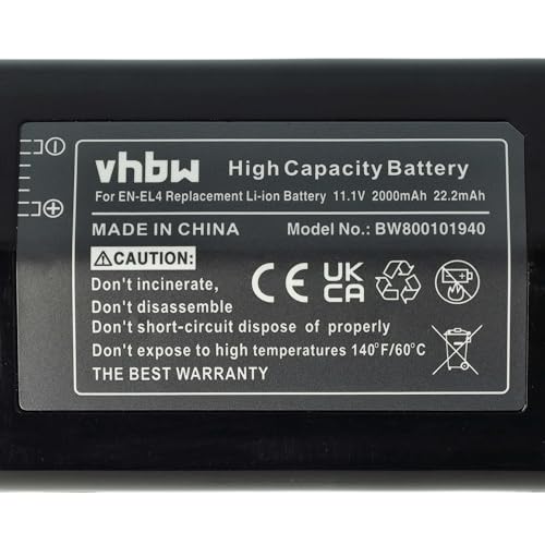 Batteria Li-Ion adatta per NIKON D2H, D2Hs, D2X, D2Xs, F6, 2000mAh D3, D3X sostituisce EN-EL4, EN-EL4a 11,1 V
